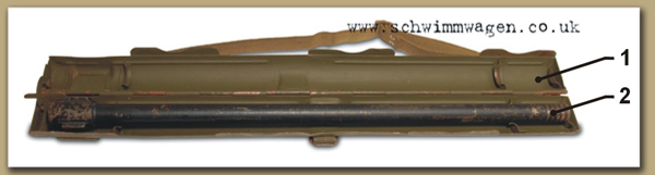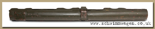 The Laufschützer 34 (Single Barrel Container) with a high cyclic rate on the MG34 it was common practise to change the barrels often to avoid runing them by overheating. Several spare barrels were always carried alongside the MG.